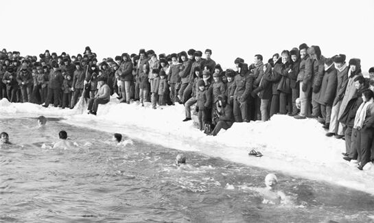 寒冷,是“貓冬”的理由,也是“鬧冬”的動力。 孩子們滾雪球、打雪仗、堆雪人,還有抽冰猴、“斗雞”…… 跑跑跳跳,汗流浹背,越冷越歡騰。勇敢、熱血、昂揚,是歡騰的另一種注腳。 1980年冬天,佳木斯的氣溫降到零下二三十攝氏度。有人一連幾天在冰面上鑿啊挖啊, 誰也沒想到,他們竟挖出個泳池打算游泳!“燃”這個字,不僅僅屬于年輕人。 一群平均年齡接近60歲的“老男孩”,重新組建了一支叫“北京1979”的冰球隊。 這個特別的名字背后,是一個在40多年前戛然而止的夢想。
