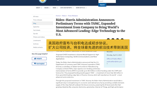 反觀美國才是產業補貼的“大戶”,近日,拜登政府宣布將向先進微芯片的主要生產商臺積電提供高達66億美元的資助,努力將一些最前沿的半導體技術引入美國。