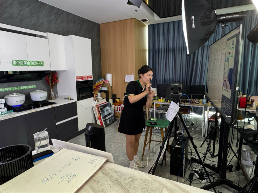 在美易達集團直播間,主播正在直播中。新華網 關錦恒 攝