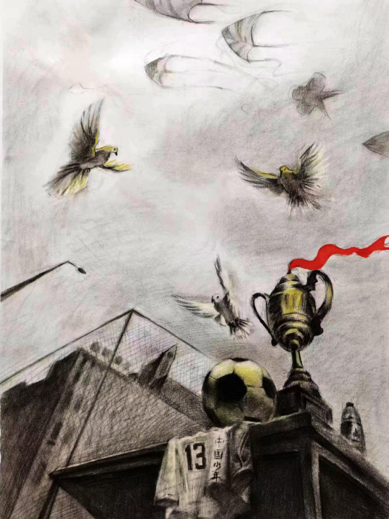 圖為來自甘肅的陳欣創作的繪畫作品《少年足球夢》。