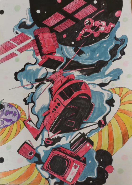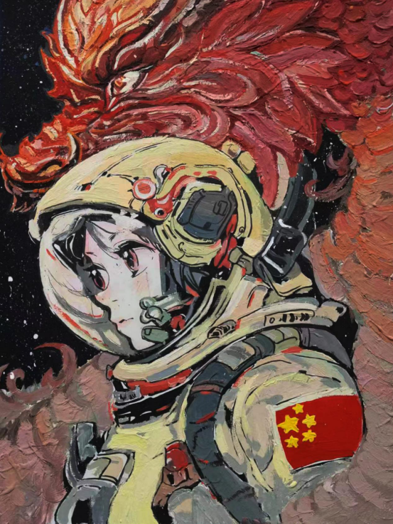 圖為來自甘肅的范欣怡創作的繪畫作品《熾熱的航天夢》。