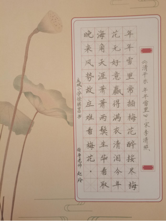 圖為來自甘肅的徐琪茜創作的書法作品《清平樂 年年雪里》。