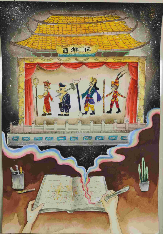 圖為來自甘肅的董依珊創作的繪畫作品《傳承家鄉藝術的夢》。