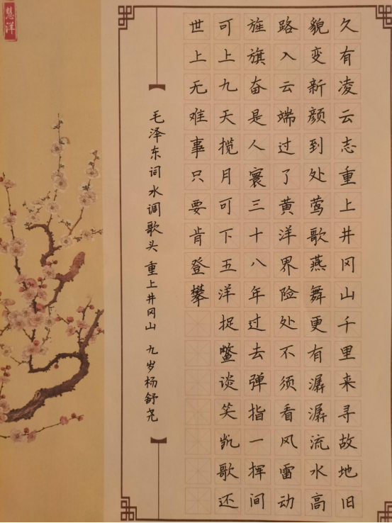 圖為來自甘肅的楊舒堯創作的書法作品《水調歌頭 重上井岡山》。