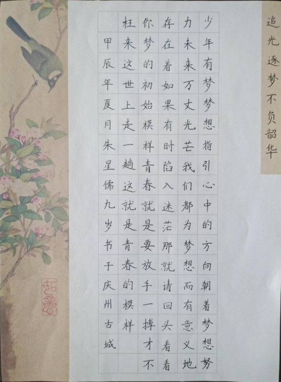 圖為來自甘肅的朱星儒創作的書法作品《追光逐夢 不負韶華》。