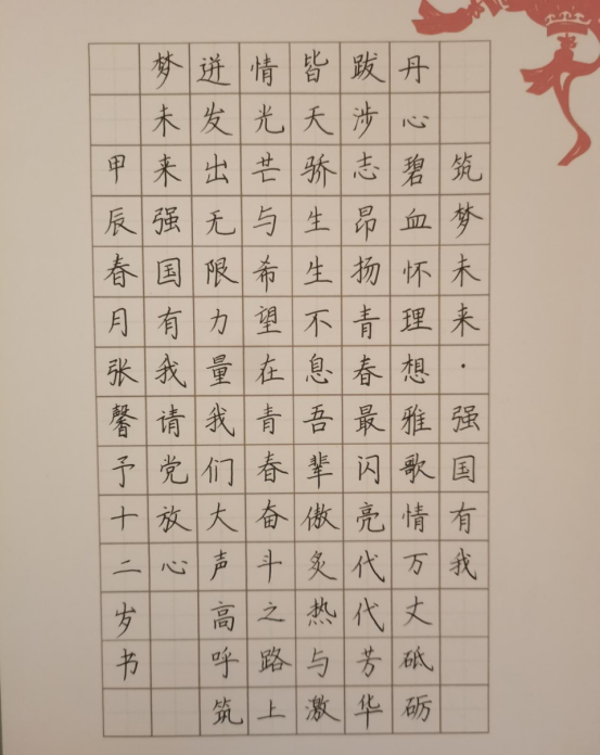圖為來自甘肅的張馨予創作的書法作品《筑夢未來,強國有我》。