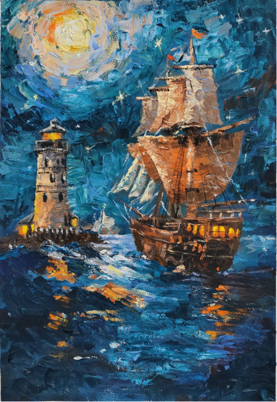 圖為來自甘肅的魏子賢創作的繪畫作品《夢想遠航》。