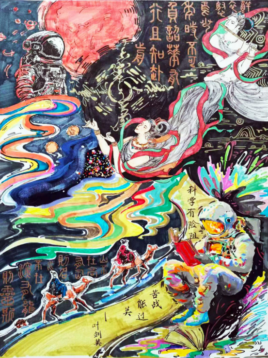 圖為來自甘肅的肖雨馨創作的繪畫作品《古今飛天夢》。