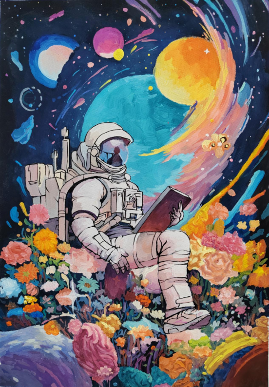 圖為來自甘肅的羅文菁創作的繪畫作品《暢想未來》。