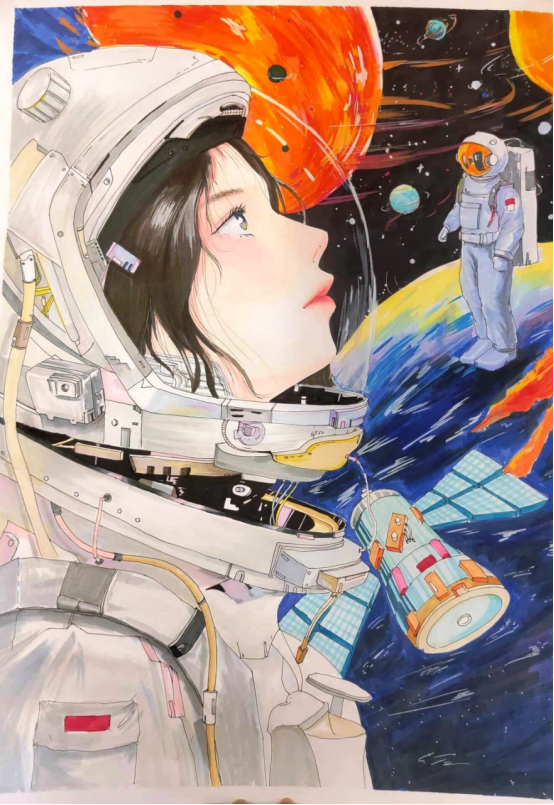 圖為來自甘肅的冷靈俠創作的繪畫作品《我的太空夢》。