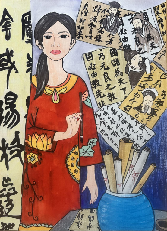 圖為來自甘肅的慕芝曉創作的繪畫作品《書法家之夢》。