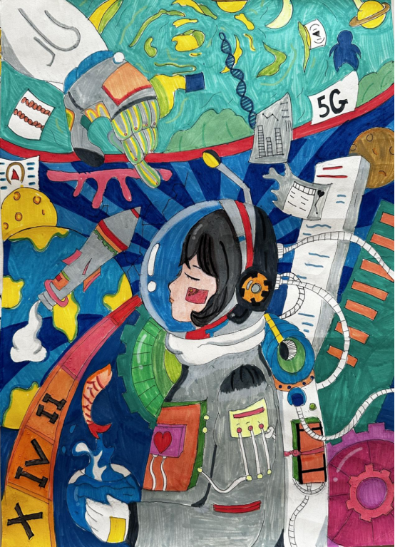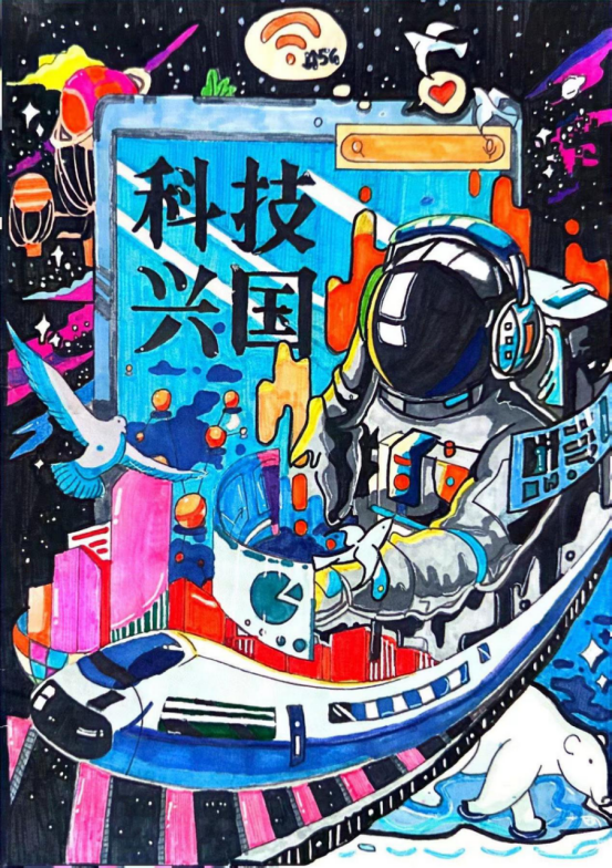 圖為來自甘肅的王藝雯創作的繪畫作品《科技興國》。