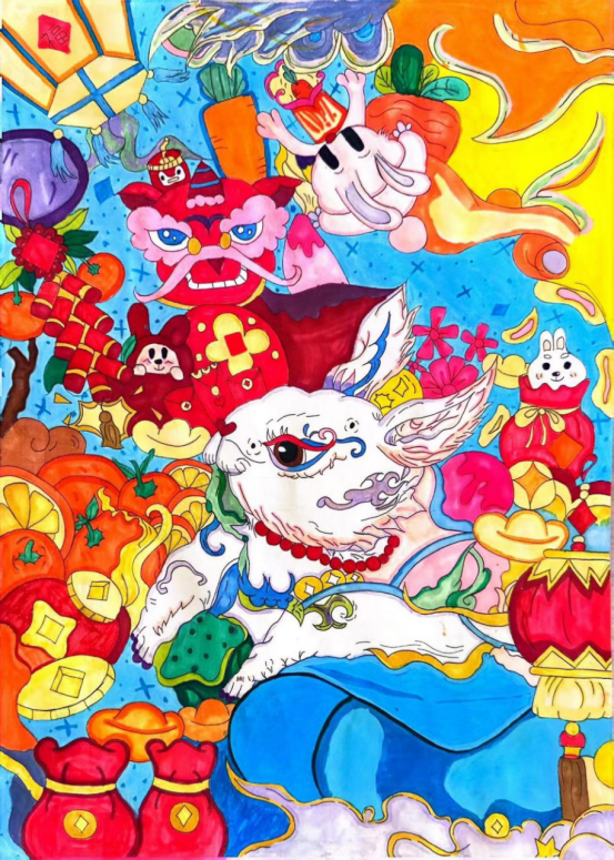 圖為來自甘肅的高梓桐創作的繪畫作品《兔年大吉》。