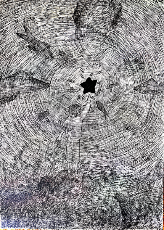 圖為來自河北的李慧創作的繪畫作品《星星》。