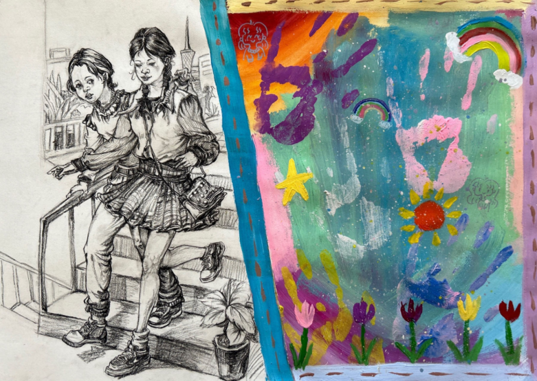 圖為來自河北的郄玉穎創作的繪畫作品《童真》。