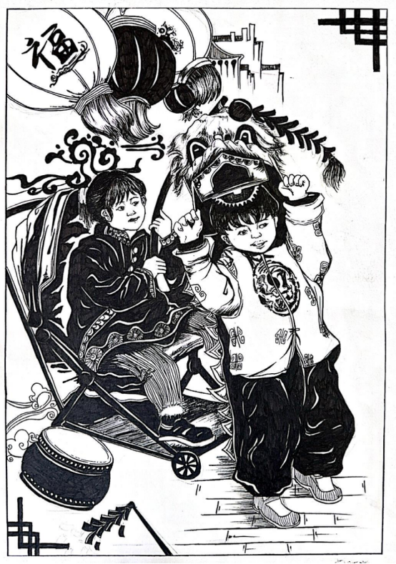 圖為來自河北的李程璐創作的繪畫作品《舞獅子》。