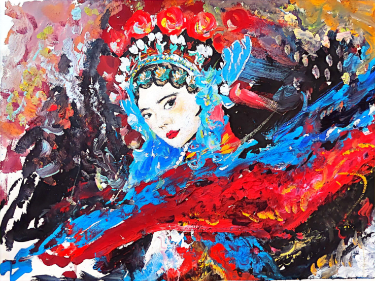 圖為來自河北的穆水蓮創作的繪畫作品《藝曲驚人》。