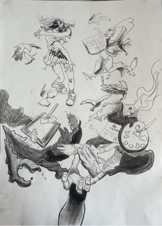 圖為來自河北的尤炯月創作的繪畫作品《自由穿梭》。