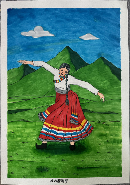 圖為來自西藏的古如卓瑪創作的繪畫作品《我的舞蹈夢》。