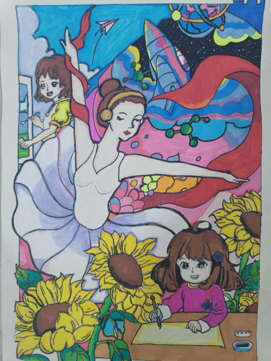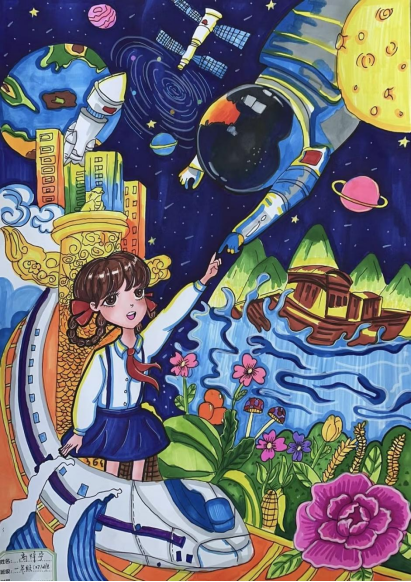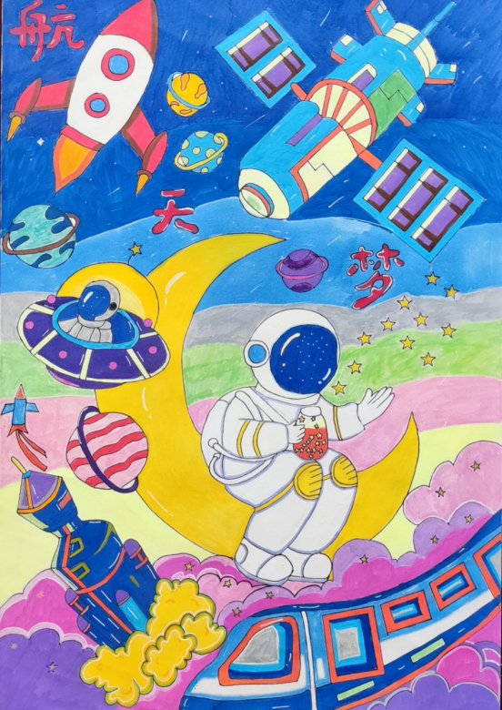 圖為來自甘肅的胡馨瑤創作的繪畫作品《我的夢想--星辰大?!?。