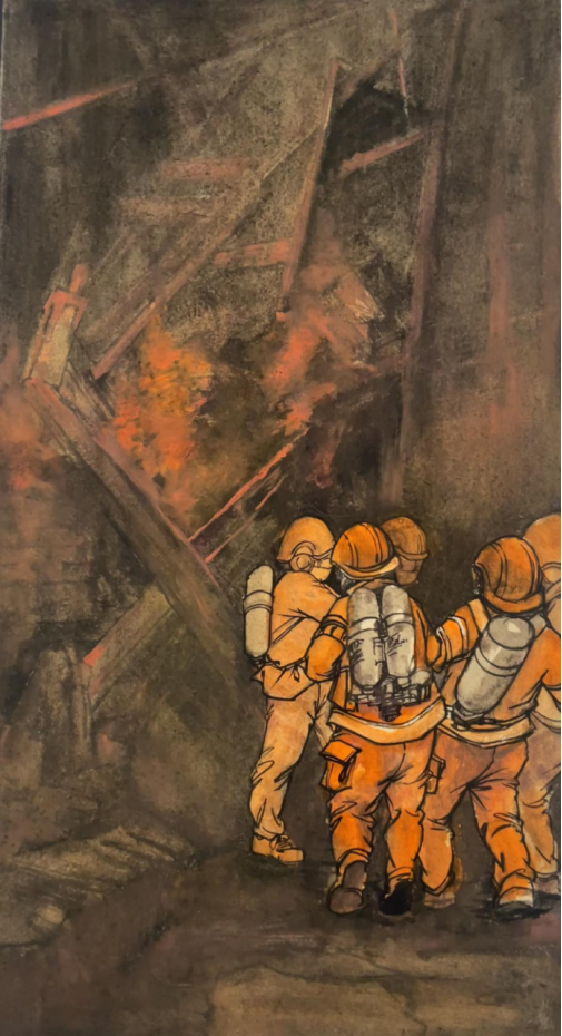 圖為來自甘肅的張婷婷創作的繪畫作品《烈火英雄》。