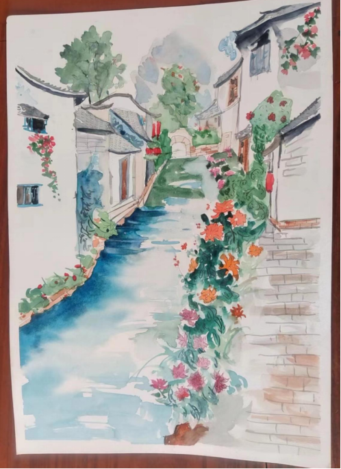 圖為來自甘肅的楊馨創作的繪畫作品《隴東小江南》。