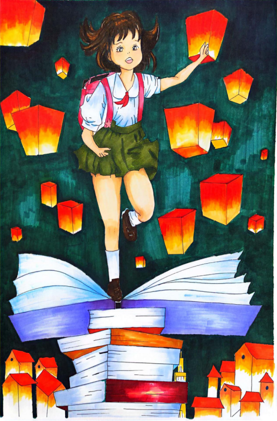 圖為來自云南的羅睿祺創作的繪畫作品《書海夢燈》。
