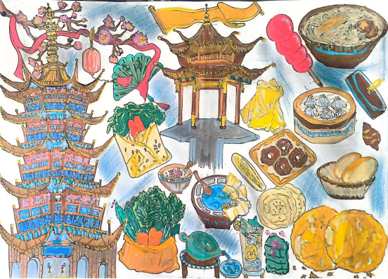 圖為來自安徽的焦文欣創作的繪畫作品《我的家鄉》。