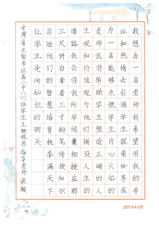 圖為來自甘肅的王珊妮創作的書法作品《我的夢想》。