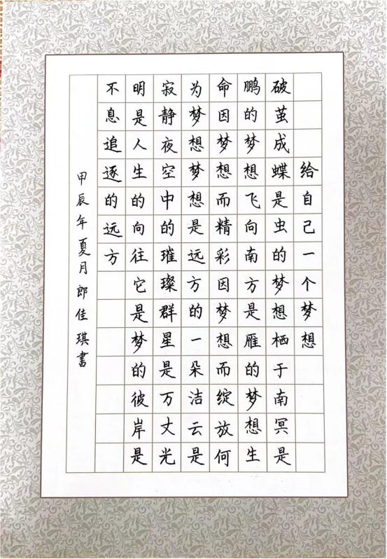 圖為來自河北的郎佳琪創作的書法作品《給自己一個夢想》。