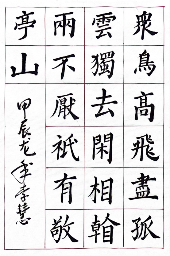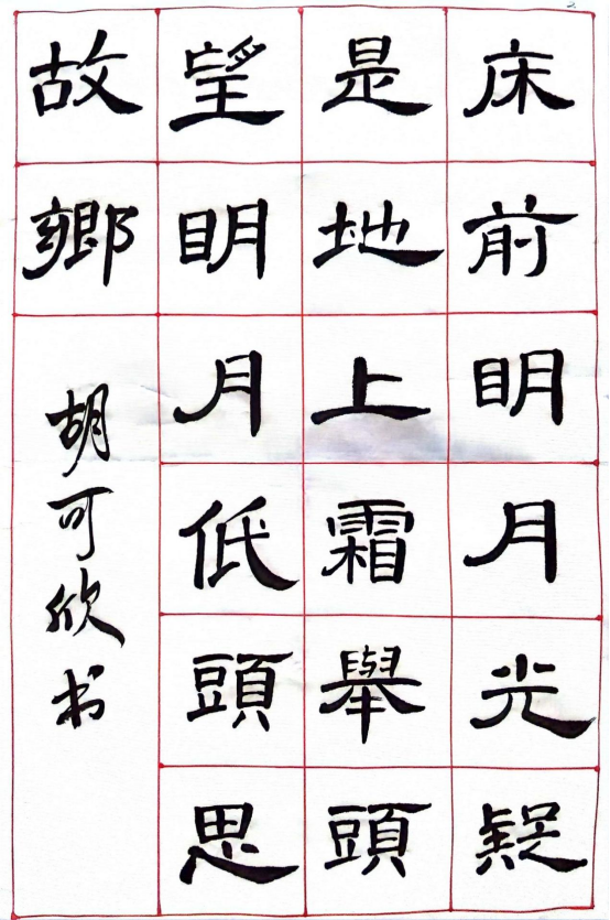 圖為來自甘肅的胡可欣創作的書法作品《靜夜思》。