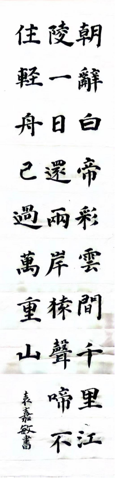 圖為來自甘肅的袁嘉敏創作的書法作品《早發白帝城》。