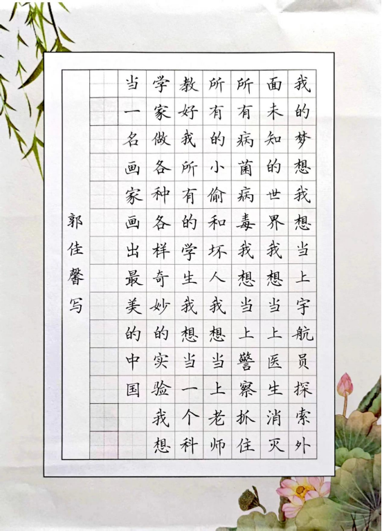 圖為來自甘肅的郭佳馨創作的書法作品《我的夢想》。