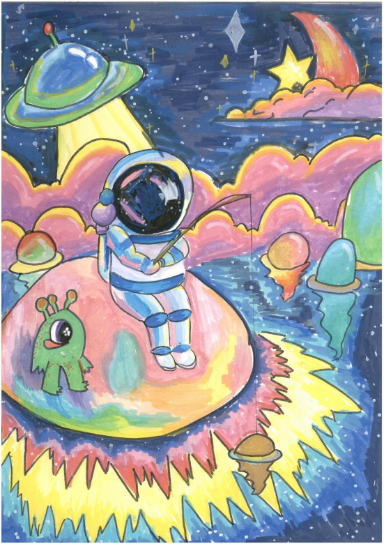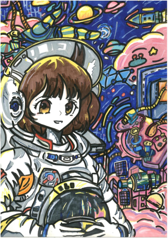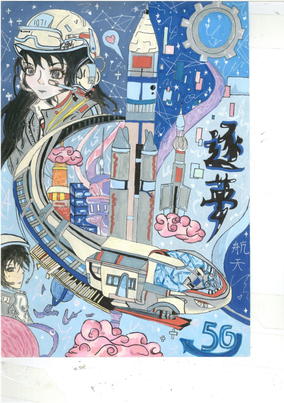 圖為來自云南的高雯穎創作的繪畫作品《逐夢航天》。