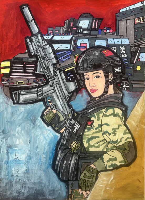 圖為來自甘肅的慕芝瑤創作的繪畫作品《女特警之夢》。