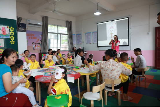 5月27日,江西省吉安市泰和縣坎頭村的陽光驛站內,專職志愿者在組織開展親子活動。新華網李科燊 攝