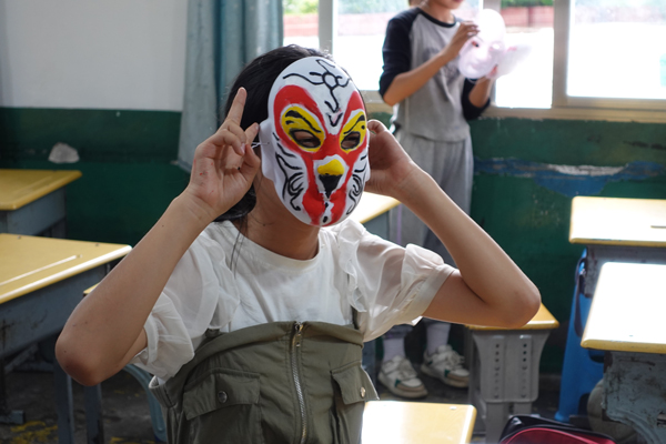 科學課上,志愿者給孩子們演示簡易的科學實驗,解釋了光合作用的原理,展示了水的三種形態;手工課上,孩子們發揮想象力將手中的材料做成各式各樣的面具,有紅臉的關公,也有威風的悟空。對于偏遠地區的孩子們而言,這些新鮮的課程體驗就像一道道調味劑豐富了這個夏天。