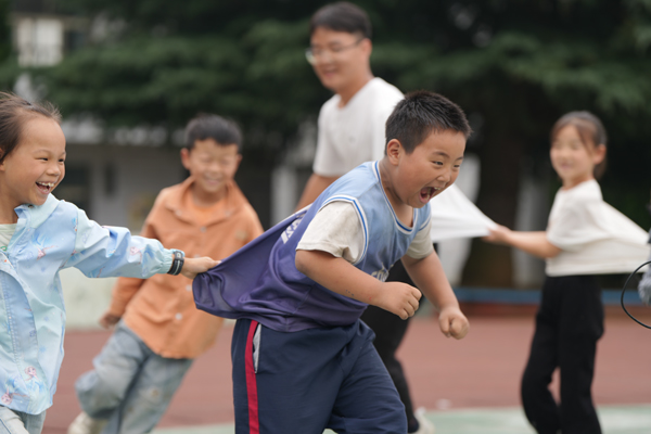 維新二小的孩子們中,不少人的父母外出打工,小孩則交由家里的老人或親戚看護。曾經有過留守經歷的鐘厚鳴深有感觸?!皩α羰貎和瘉碚f,他們需要的不是憐憫,而是平等的對待和理解?!辩姾聒Q常常這樣說,并身體力行。體育課上指導學生跳繩時,他會特意蹲下,與孩子保持平視,調整對方握繩的姿勢。