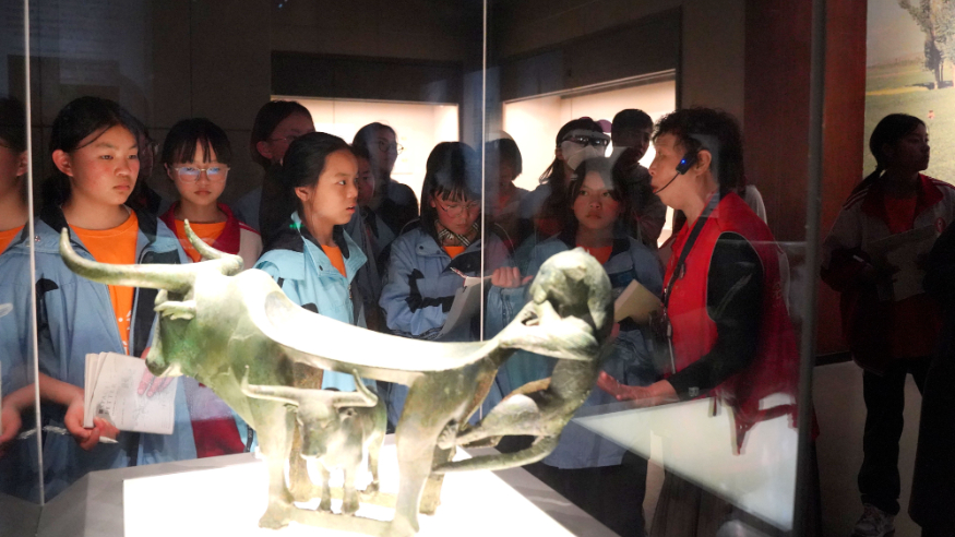 走進云南省博物館,從“遠古云南”到“青銅文明”,歷史的發展、文化的進步、先輩的偉大,如畫卷般一幕一幕徐徐呈現在女孩們的眼前。青銅?;~案、戰國大理銀鎏金鑲珠金翅鳥等鎮館之寶,令大家贊嘆不已。孩子們用筆記錄著文物背后的故事,在觸摸歷史的脈絡中,文化自信和民族自豪感油然而生。