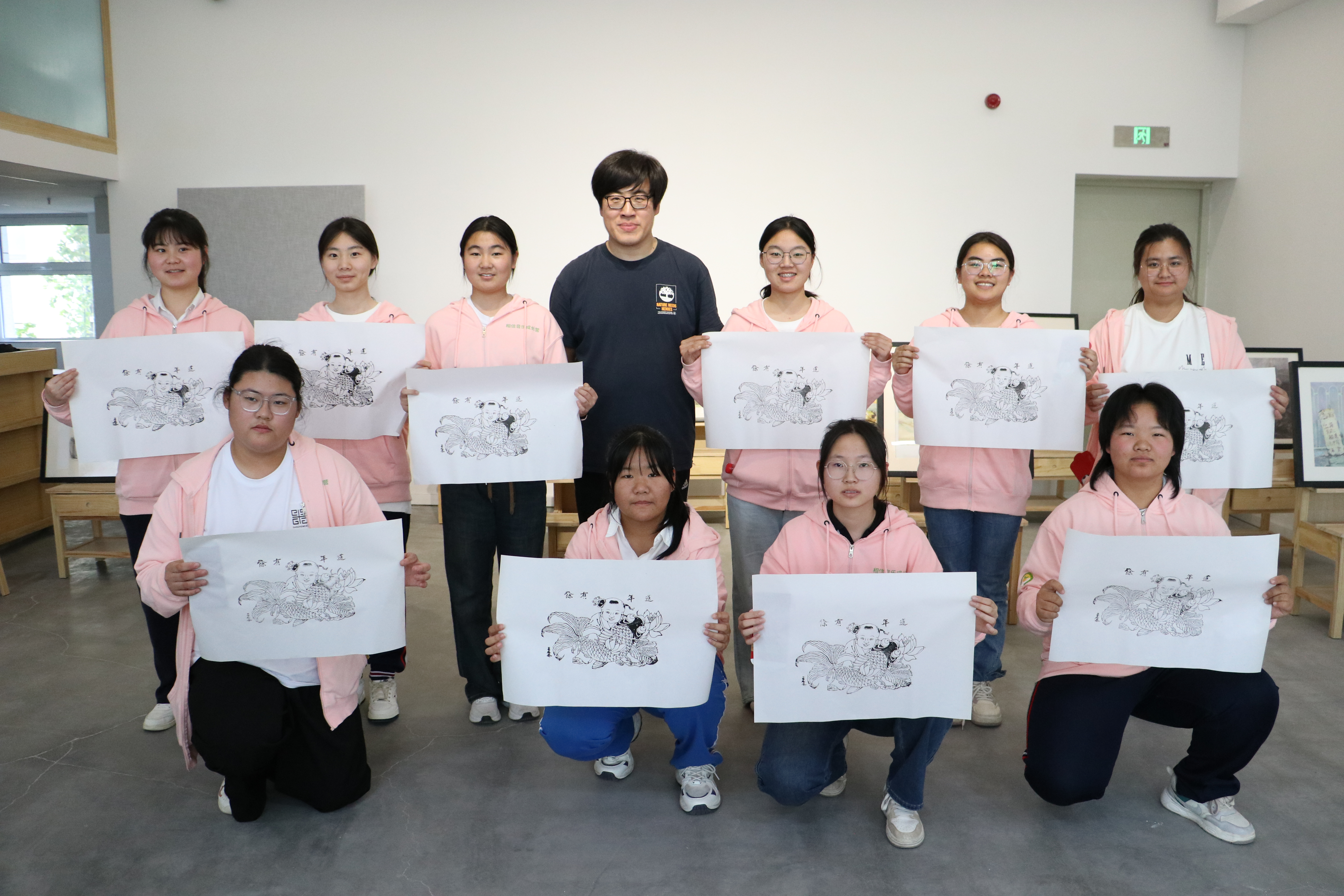 下午的活動充滿了傳統文化氣息。在楊柳青木版年畫工作室,木版年畫傳承人楊鵬以“美在民間 與美同行”為題,向同學們介紹了楊柳青木版年畫的歷史、特點以及題材類型,講解了楊柳青木版年畫勾、刻、印、繪等制作過程。