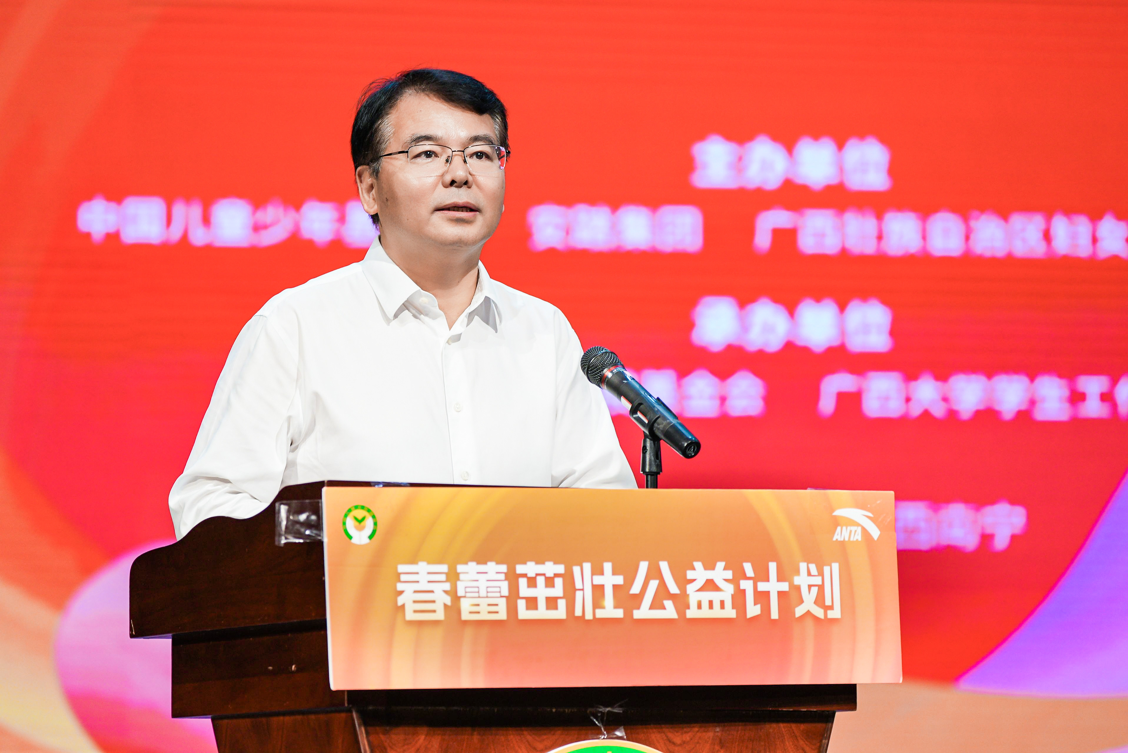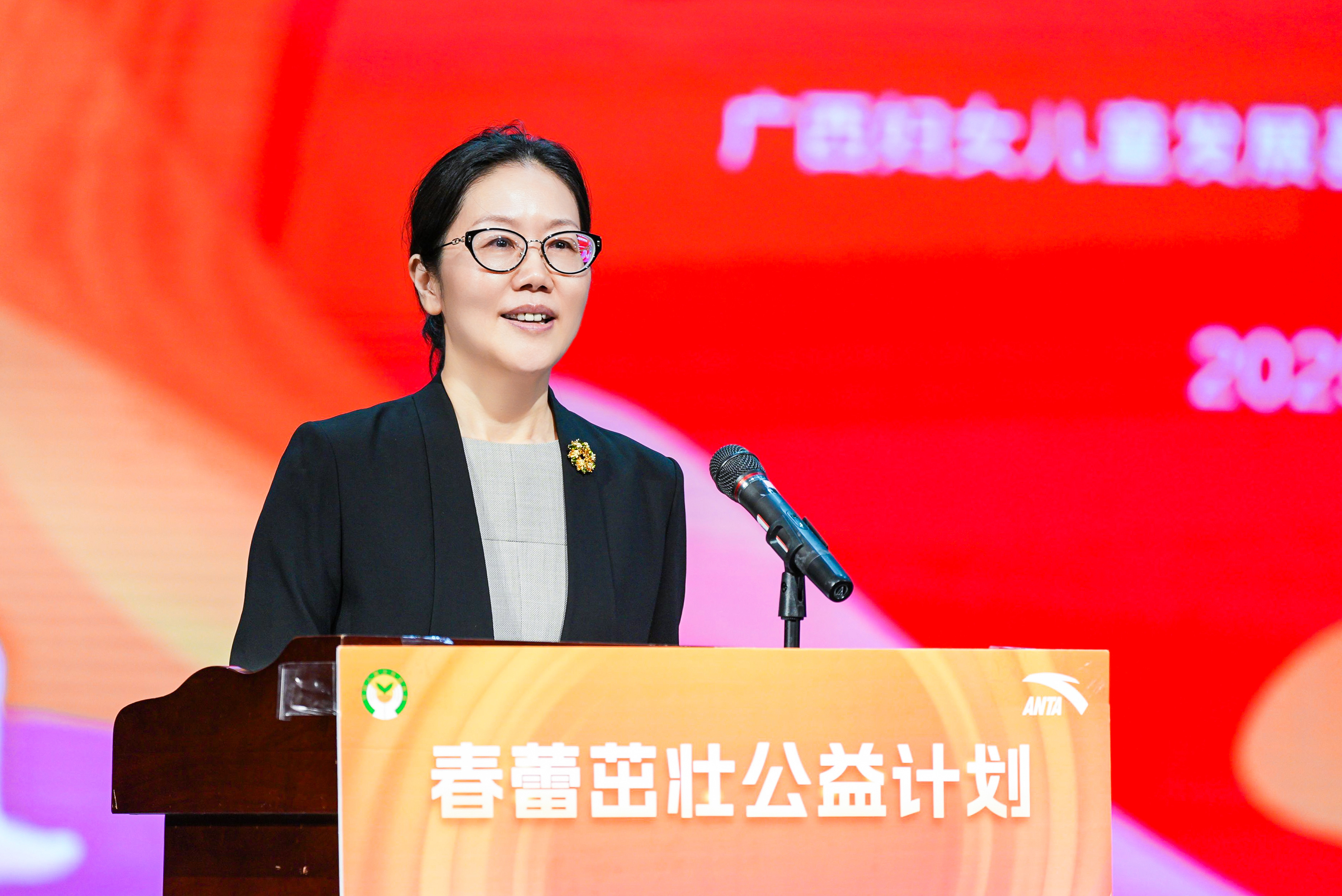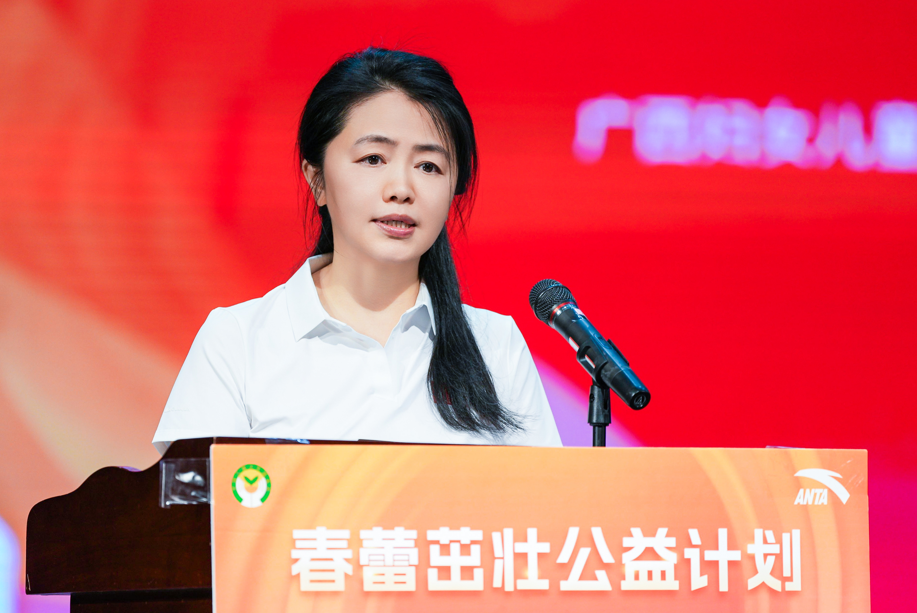5月23日,中國兒童少年基金會(簡稱中國兒基會)攜手安踏體育用品集團有限公司(簡稱安踏集團)在廣西舉辦“春蕾茁壯公益計劃”成長課堂暨助學金及裝備包發放儀式。中國兒基會秘書長李忠明,廣西壯族自治區婦聯黨組書記、主席胡晶波,安踏集團首席人力官、廈門安踏營運中心婦聯主席熊凌,廣西大學黨委書記李國忠出席儀式并講話。廣西婦女兒童發展基金會理事長井紅出席儀式,廣西壯族自治區婦聯黨組成員、副主席朱玉紅主持儀式。中國兒基會、安踏集團、廣西壯族自治區婦聯及婦兒基金會、廣西大學、受助女童代表等800余人參加。