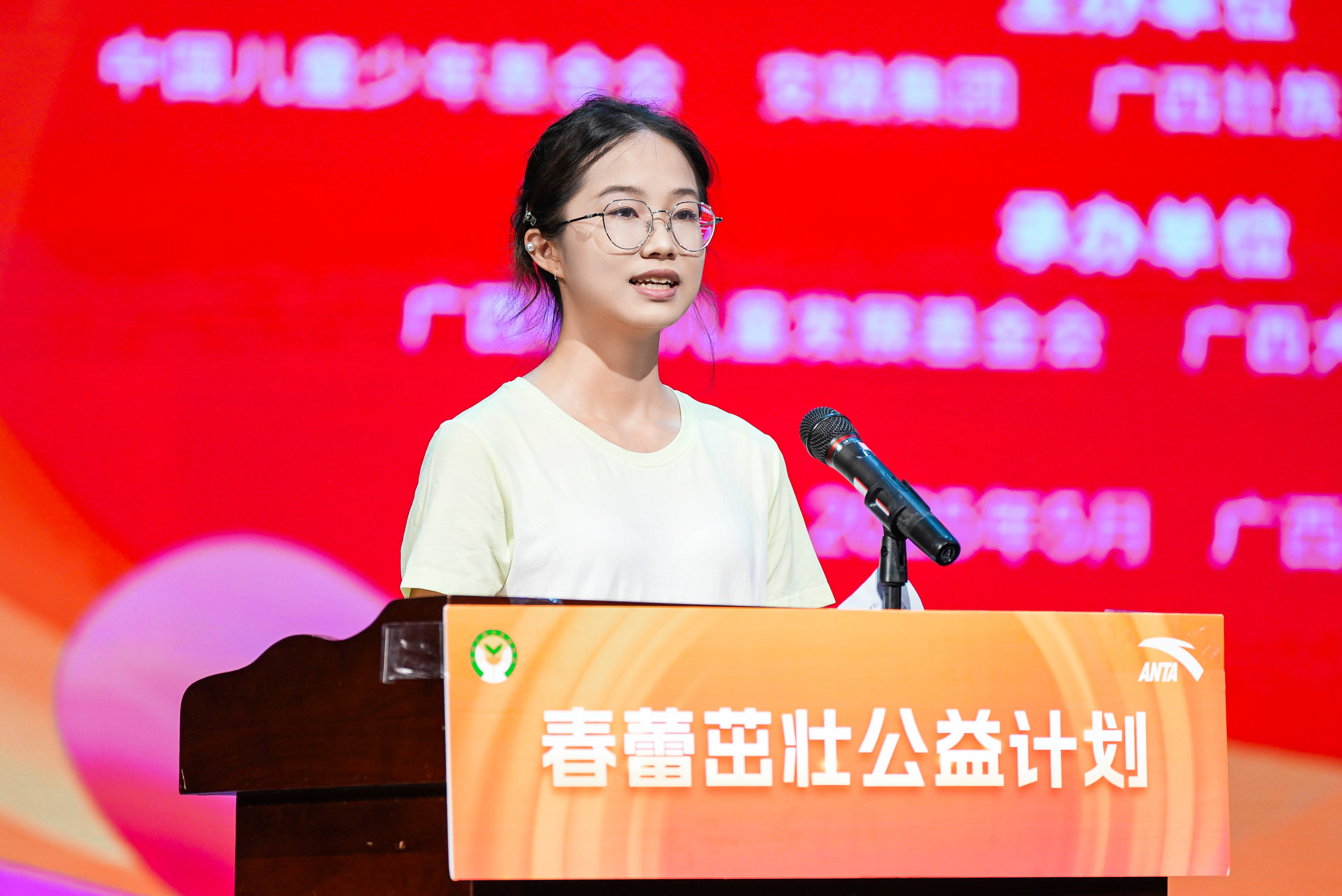 李國忠表示,廣西大學一直高度重視婦女兒童工作,始終將女大學生成長成才作為育人工作的重要內容,大力實施“教育培養質量全面提升工程”,從人才培養、成長護航、權益保障等方面構建全方位、多層次的支持體系,為學生健康成長積極營造良好環境。學校將進一步加強與中國兒基會、廣西壯族自治區婦聯、安踏集團的公益合作,建立長效機制,積極引導和激勵更多受助學子堅定不移聽黨話、感黨恩、跟黨走,以堅定信念為帆,以踏實奮斗為槳,努力成長為堪當民族復興重任的時代棟梁。