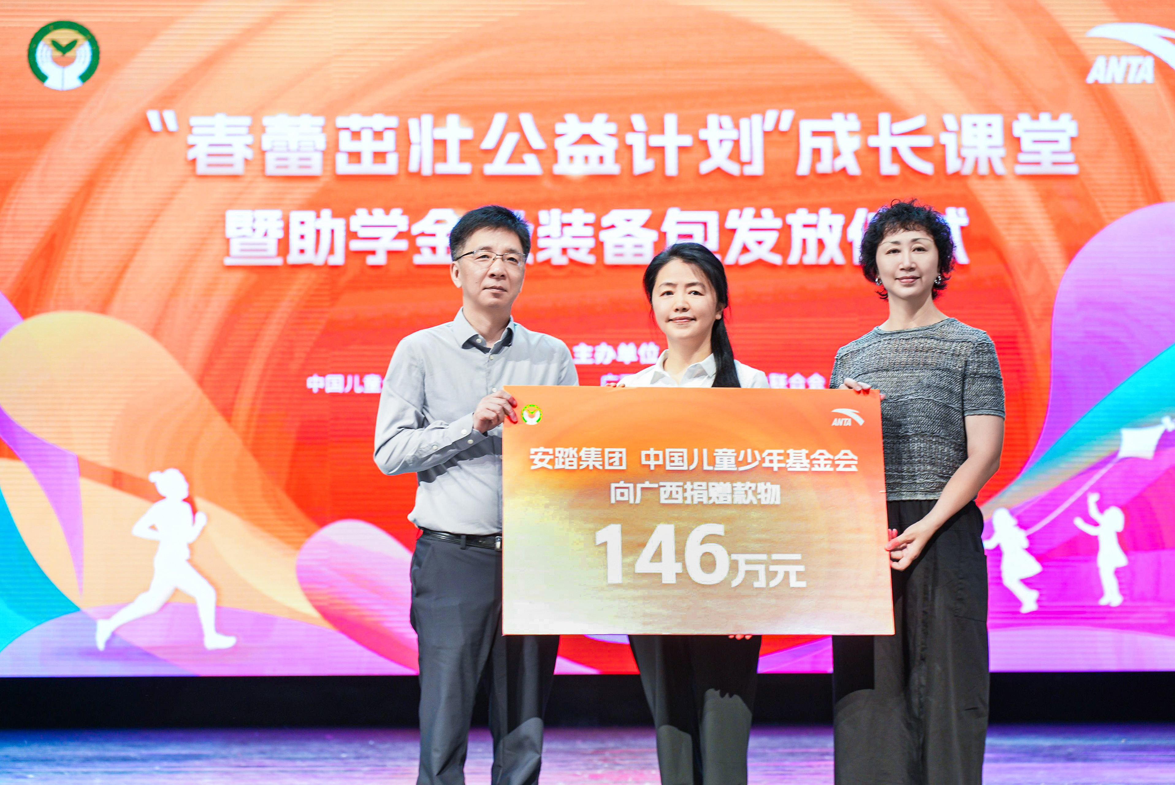 2024年10月,中國兒基會和安踏集團共同發起實施“春蕾茁壯公益計劃”,安踏集團向中國兒基會捐贈款物4000萬元,支持全國31個省(區、市)開展春蕾助學、女子運動成長營及運動隊資助等公益活動。項目實施至今,已有包括廣西大學在內12個?。▍^、市)12所大學的300名女大學生及300名女高中生得到助學金資助,萬余名春蕾女童獲得物資幫扶。