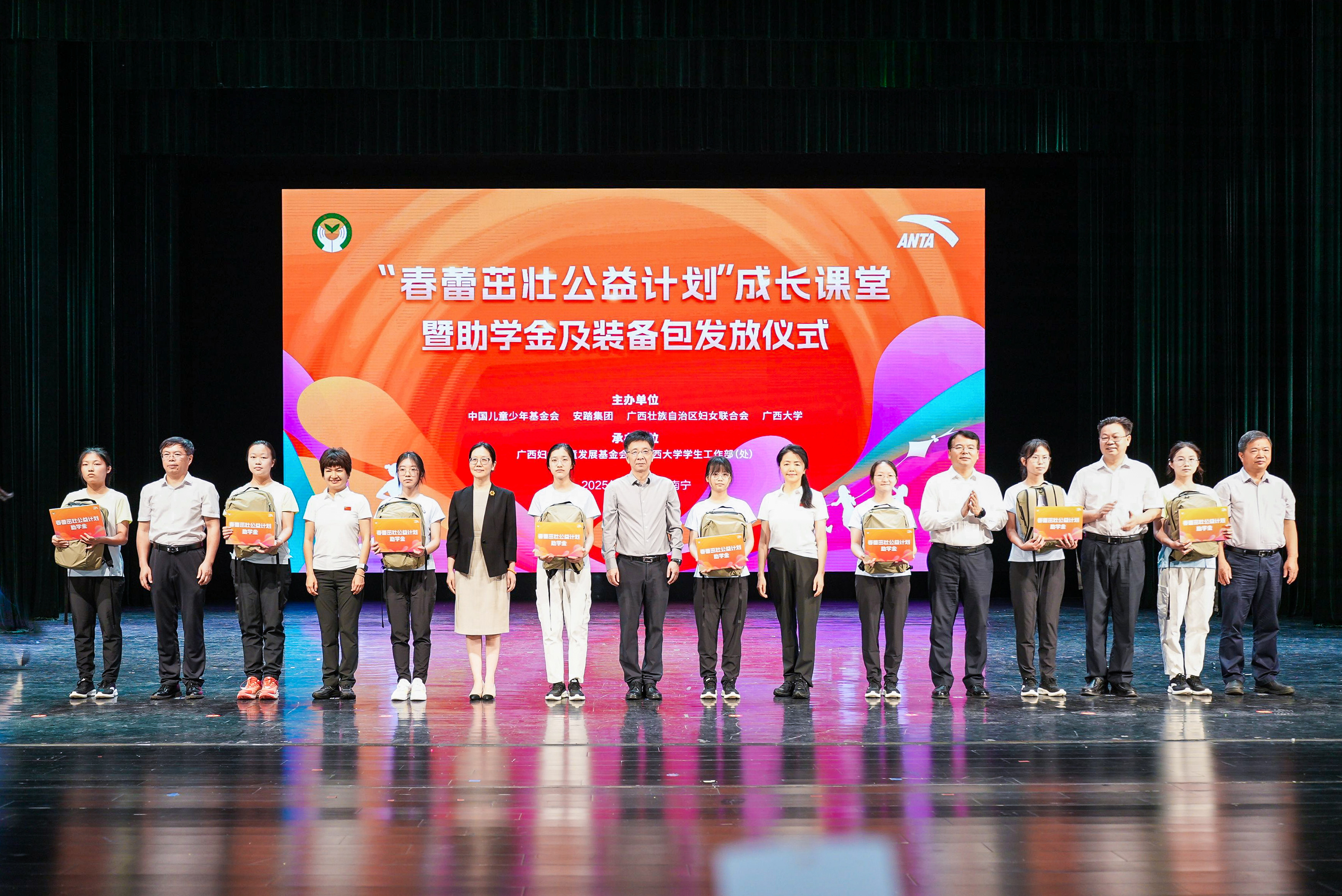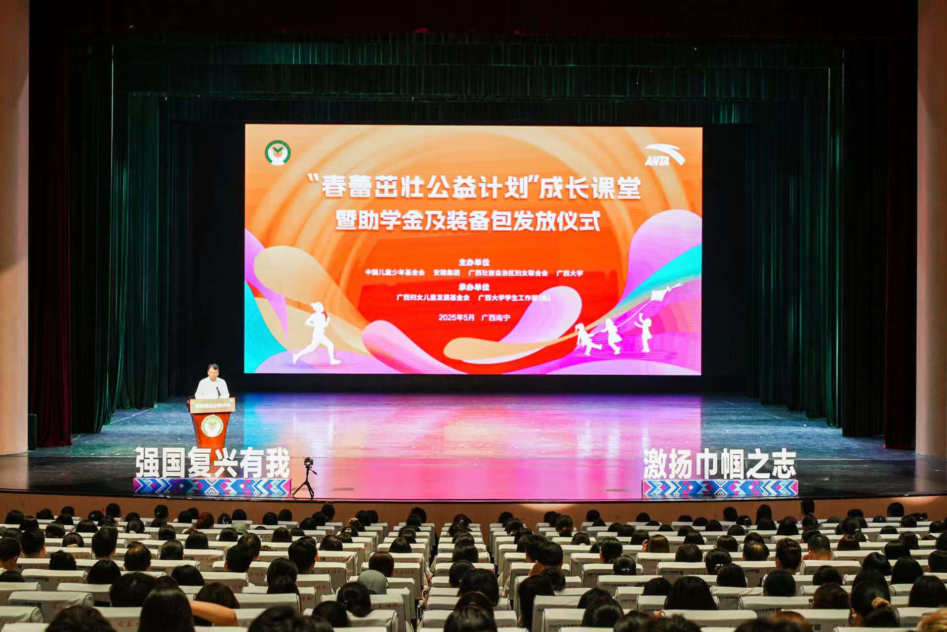 2024年10月,中國兒基會和安踏集團共同發起實施“春蕾茁壯公益計劃”,安踏集團向中國兒基會捐贈款物4000萬元,支持全國31個省(區、市)開展春蕾助學、女子運動成長營及運動隊資助等公益活動。項目實施至今,已有包括廣西大學在內12個?。▍^、市)12所大學的300名女大學生及300名女高中生得到助學金資助,萬余名春蕾女童獲得物資幫扶。