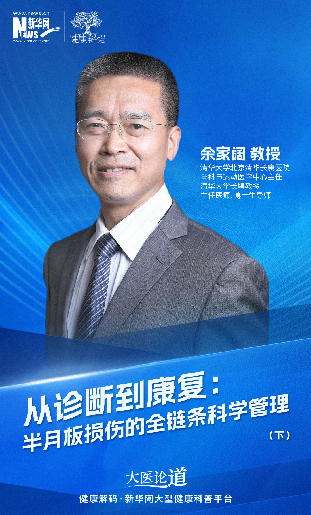 本集節目我們邀請了清華大學北京清華長庚醫院骨科與運動醫學中心主任、清華大學長聘教授、主任醫師、博士生導師余家闊教授分享《從診斷到康復 半月板損傷的全鏈條科學管理(下)》。