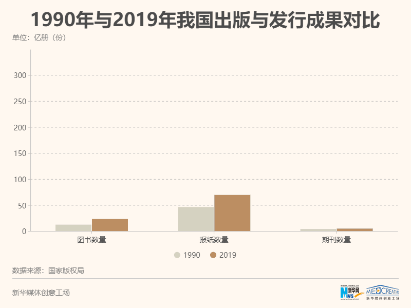 ????? 各類版權作品不斷豐富,內容涵蓋各領域。版權制度體系不斷完善、社會版權意識不斷提升,極大激勵了文學藝術作品創作生產。2019年我國共出版圖書105.97億冊(張),比1990年增長了88%。人民群眾在文化需求方面的獲得感、幸福感不斷增強。