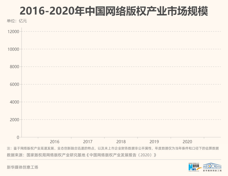 ????? 據國家版權局發布的2020年版《中國網絡版權產業發展報告》,中國網絡版權產業市場規模于2020年已達11847.3億元,首次突破1萬億元大關,同比增長23.6%。相比2016年的5003.9億元,“十三五”期間我國網絡版權產業市場規模增長超過一倍,年復合增長率近25%。