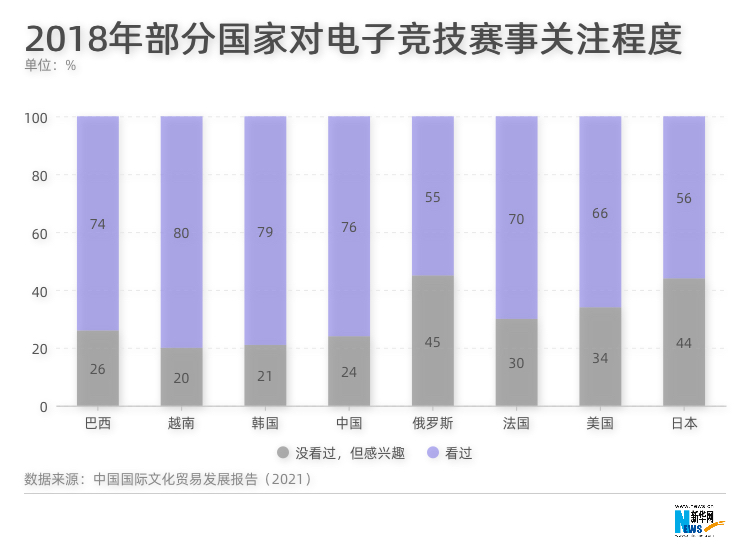 ????? 在另一項調查中,電競用戶群體中約有76%觀看過電子競技賽事,僅次于越南和韓國,說明在電競相關業務中,電競賽事的普及程度較高,中國電競用戶對電子競技的需求并不僅僅停留在游戲娛樂層面,對賽事和相關業務的需求有待進一步開發。