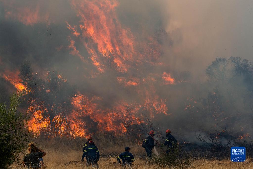 8月23日,消防員在希臘雅典西北的維利亞村進行滅火作業。