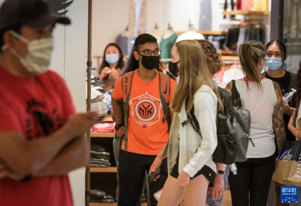 8月25日,在加拿大不列顛哥倫比亞省溫哥華,人們戴口罩逛商場。